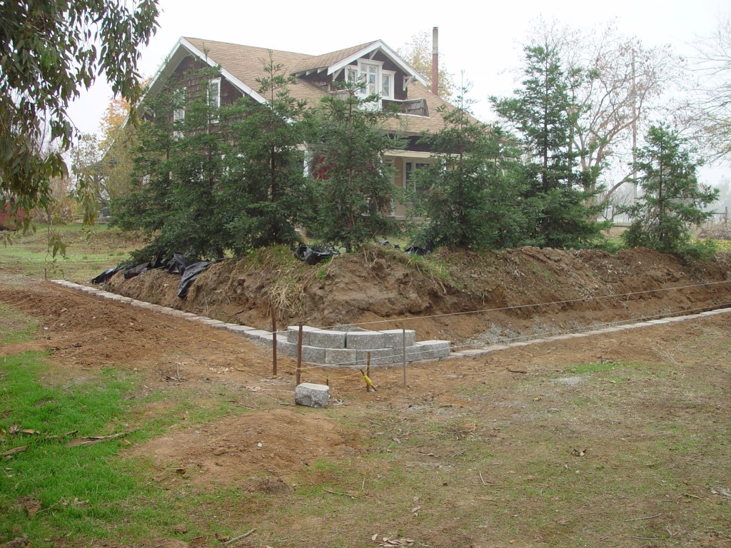 However, the location required a bit of landscaping and of course a retaining wall to keep the dirt from inevitable erosion. We actually had some dirt brought in before planting our trees.